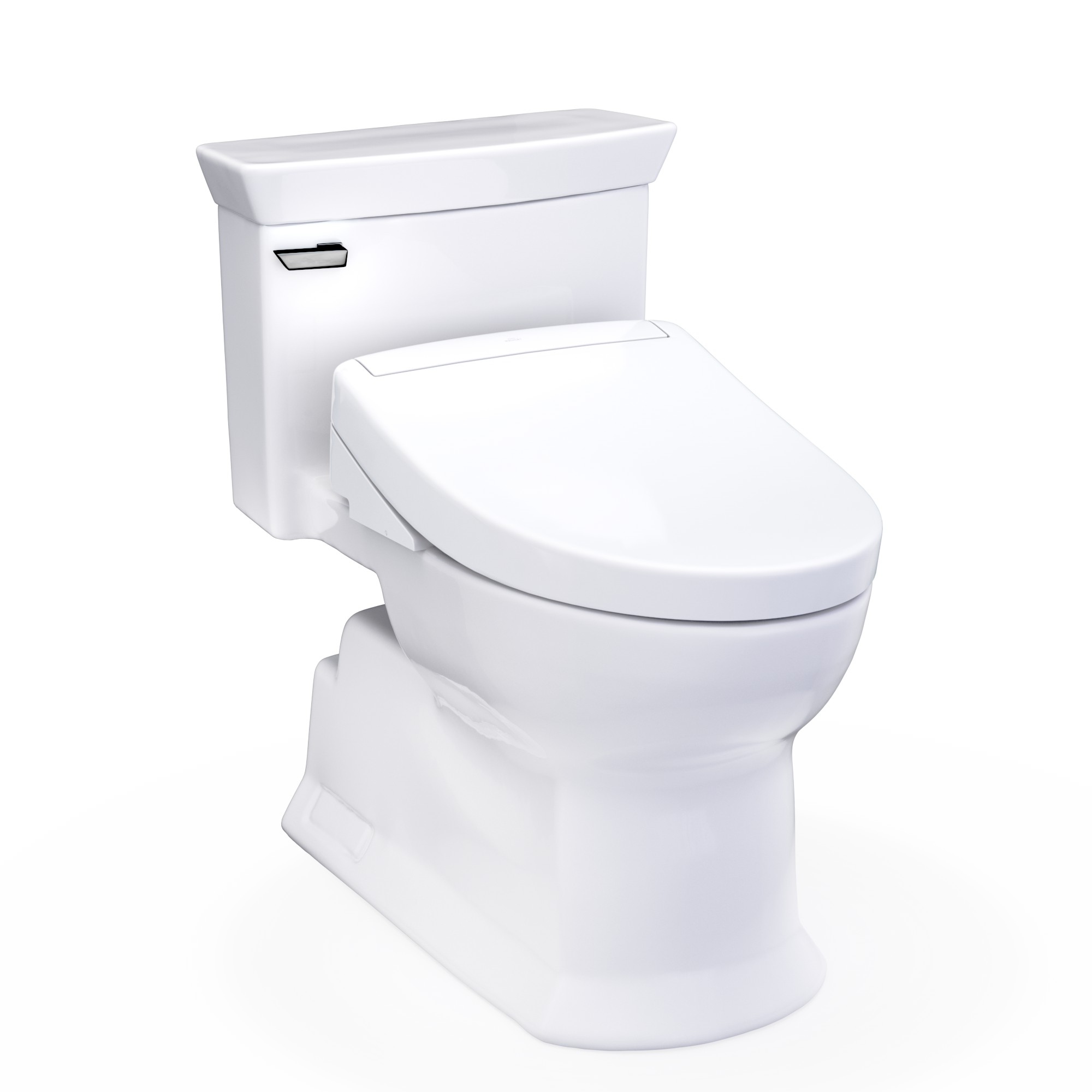 Elongated front bowl and WASHLET+ S7A contemporary lid and tank set